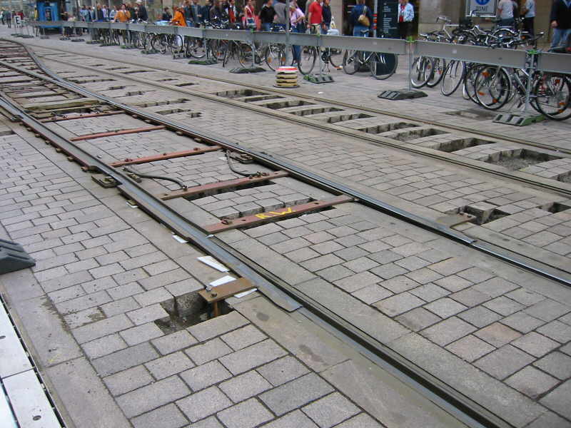 Kletterweichenbetrieb bei der Bremer Straßenbahn AG (BSAG) in der Obernstraße, Bremen. Die Fotos entstanden am 22.6.2002.